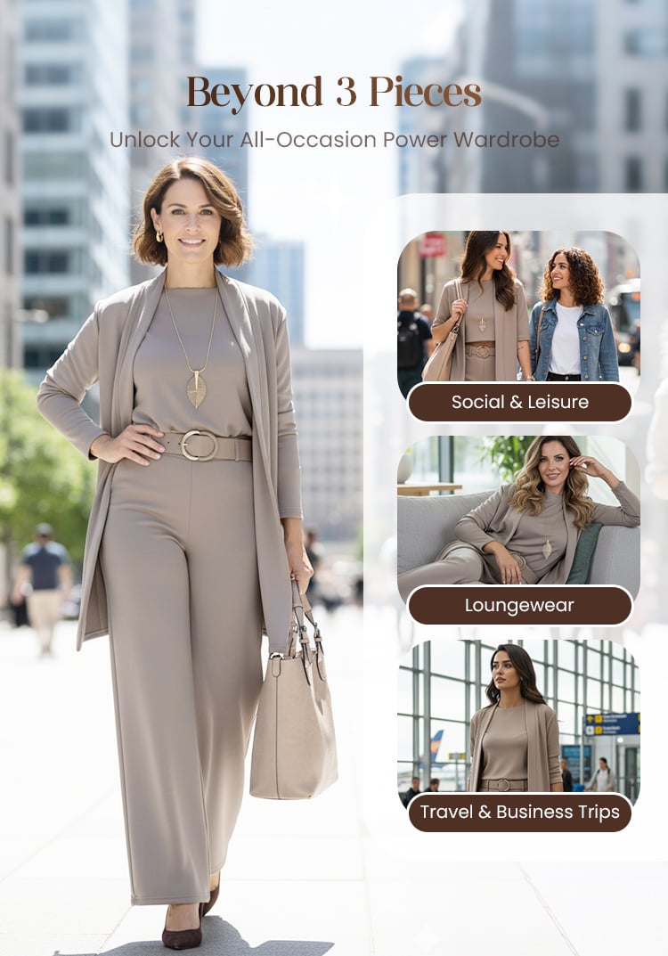 ⏳Specjalna oferta ograniczona czasowo⏰Elegancki 3-częściowy komplet zawierający długi kardigan, top i spodnie💞