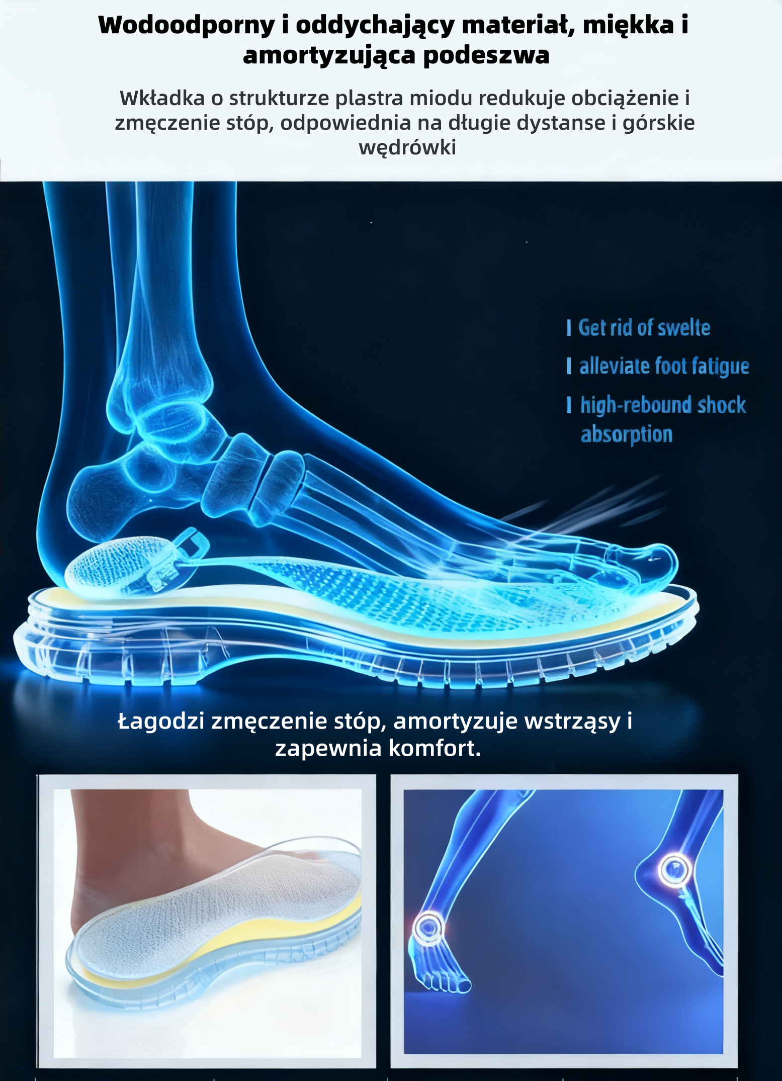 Buty te nie tylko zmniejszają obciążenie stawów, ale także wzmacniają i ujędrniają mięśnie oraz poprawiają postawę. Buty te zapewniają pełne wsparcie i elastyczność, poprawiając równowagę stóp i gwarantując całodzienny komfort, dzięki czemu możesz chodzić swobodnie i pewnie.