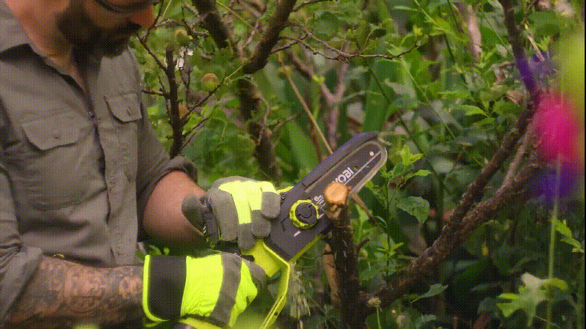 Pokonaj bujne gałęzie i liście jedną ręką! Z bezszczotkową mini-pilarką łańcuchową Ryobi ONE+ HP przycinanie ogrodu jest tak proste, jak cięcie.