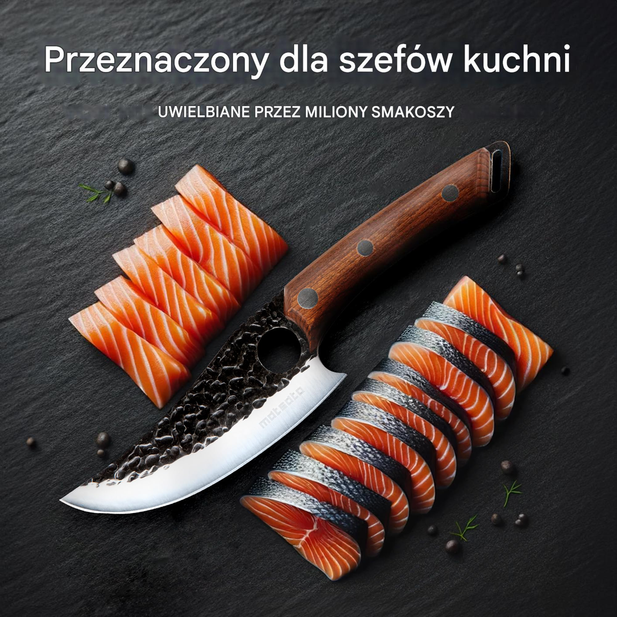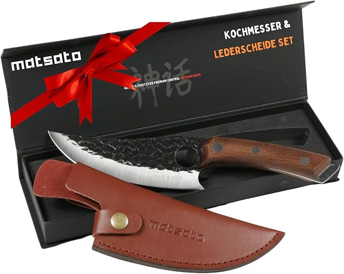 Wielofunkcyjne narzędzie – Noże Matsat nie tylko do kuchni. Z ich pomocą z łatwością posiekasz warzywa, mięso i zioła, a jednocześnie są wystarczająco wytrzymałe, aby zabrać je ze sobą na zewnątrz. Ten ostry nóż to nie tylko nóż kuchenny; może być również przydatny podczas biwakowania i polowań.