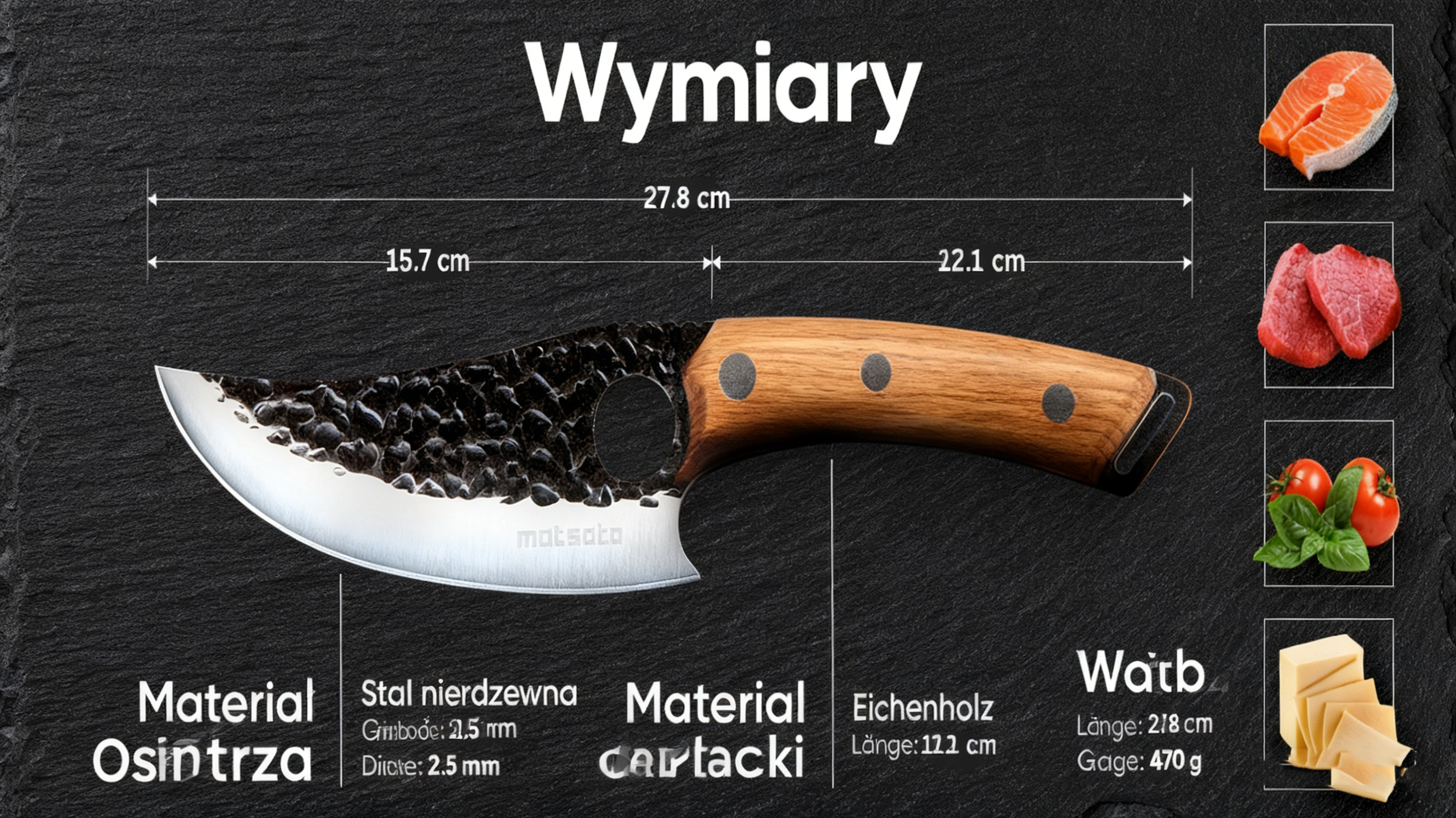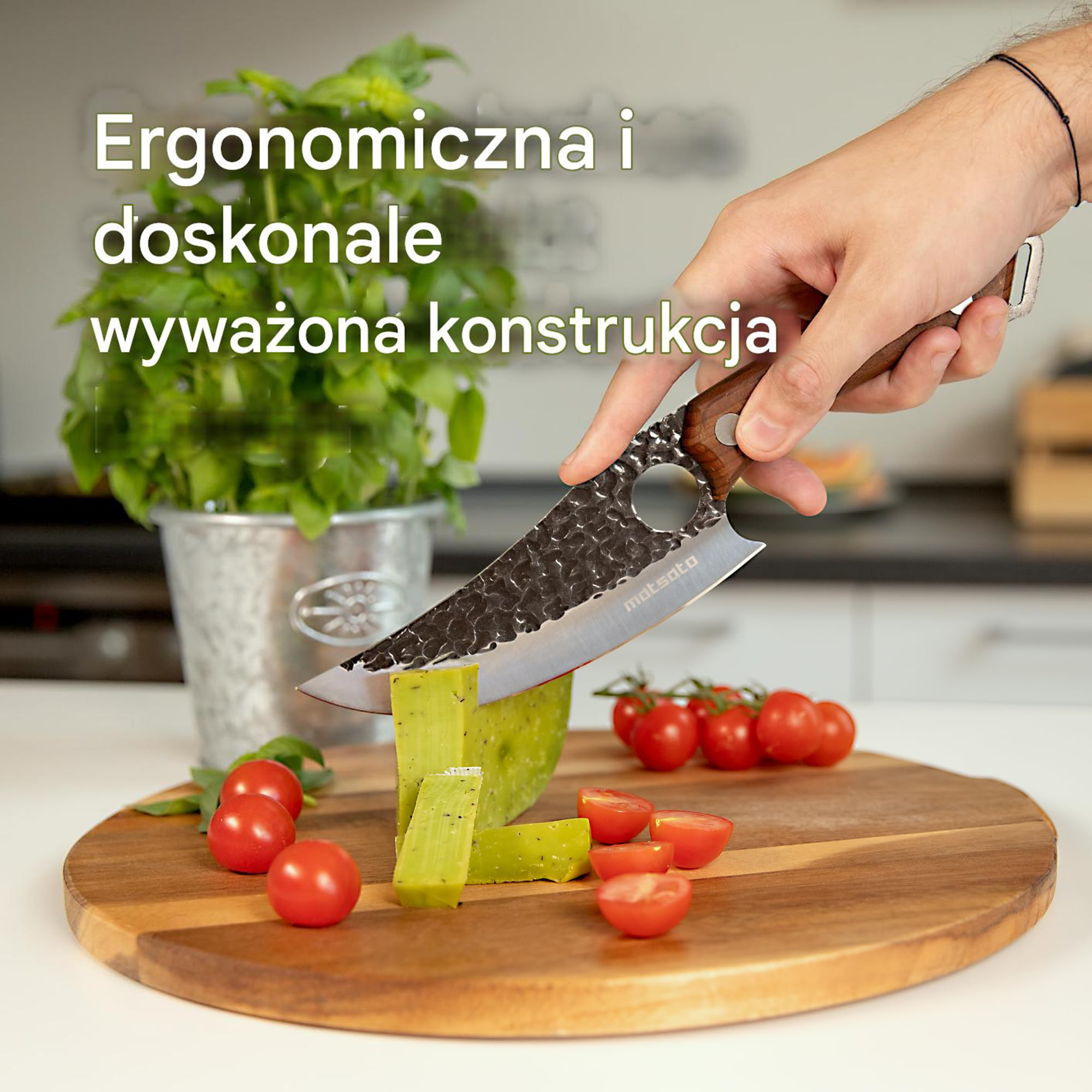 Tradycyjne wykonanie – Noże kuchenne Matsat są ręcznie wykonane z wykorzystaniem tradycyjnych kształtów i technik. Doskonale łączą nowoczesny design z tradycyjnym rzemiosłem, ułatwiając wykonywanie różnych zadań w kuchni.