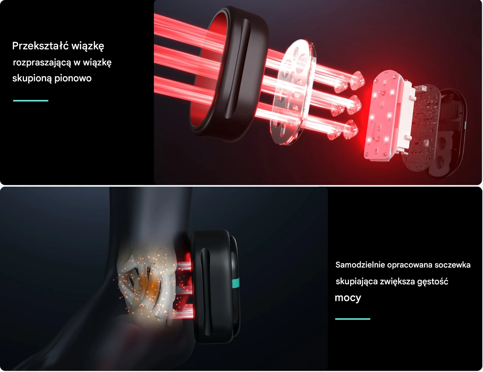 Dzięki zaawansowanej soczewce skupiającej, PRUNGO precyzyjnie skupia energię LED na konkretnych punktach bólu, eliminując potrzebę rozpraszania światła. Technologia ta zwiększa gęstość energii światła, umożliwiając bardziej precyzyjne i skuteczne leczenie danego obszaru. Efektem jest zwiększona skuteczność, przyspieszona regeneracja stanu zapalnego i skuteczne uśmierzanie bólu.